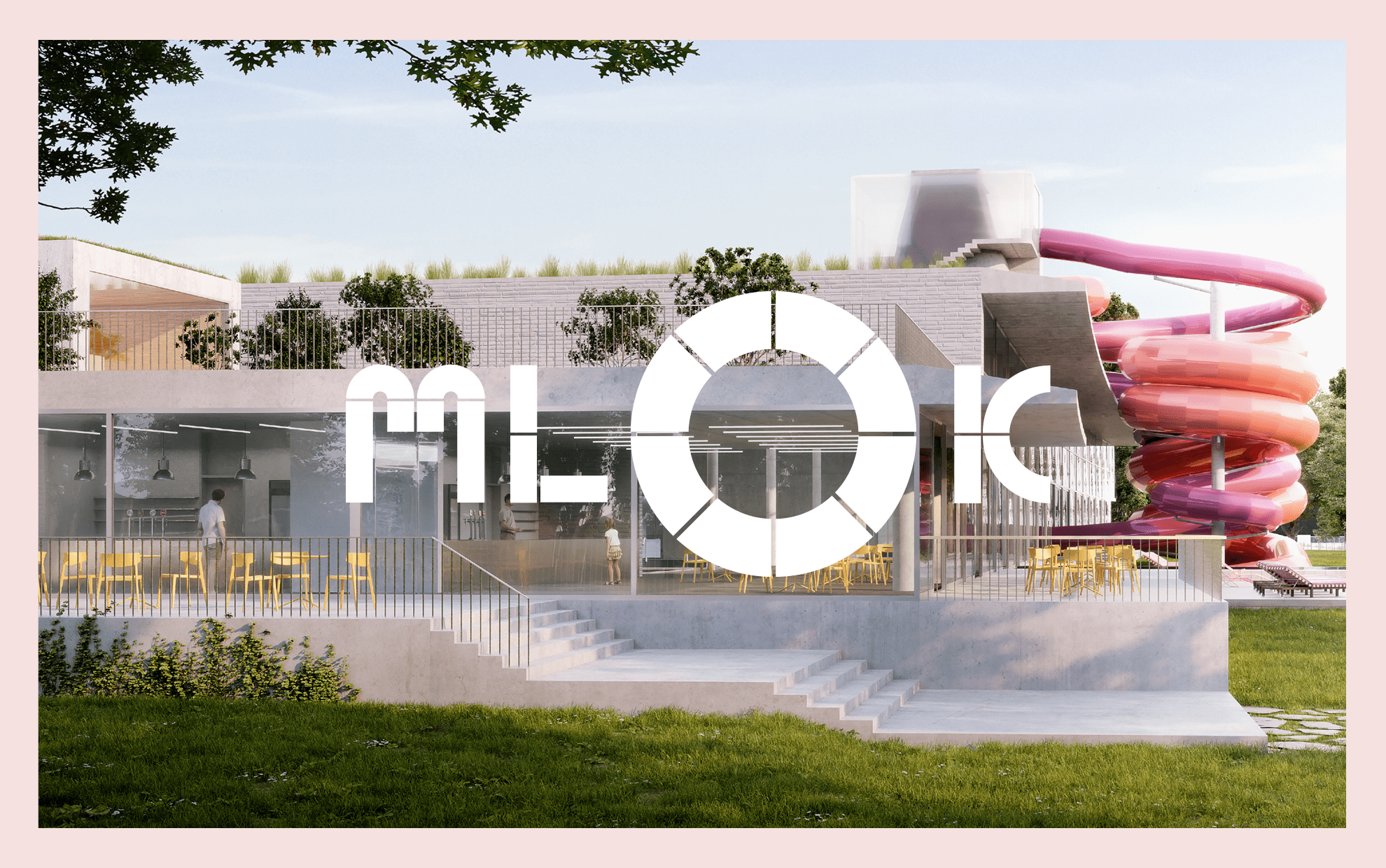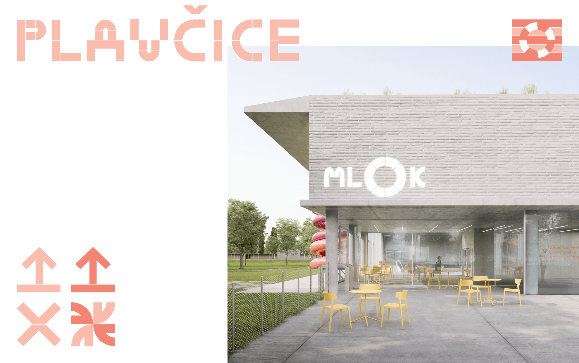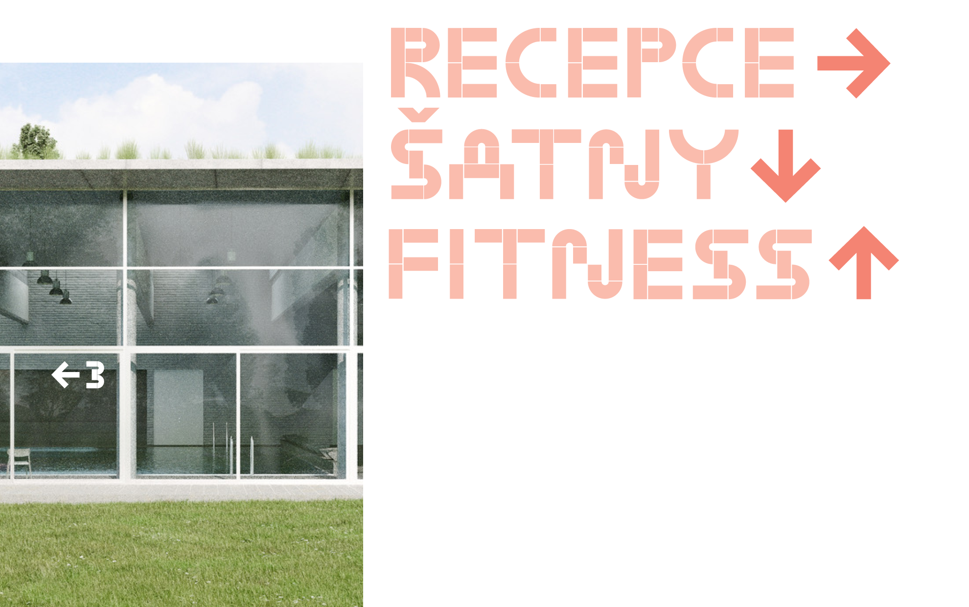 ML (O) K = Městské lázně Krnov (Krnov Municipal Spa — abbreviation of “salamander” in czech). The idea of naming a public bath was actually born right away. The typography is part of the winning architectural design of the competition for the new town spa in Krnov, which was won by the Aoc studio. We are glad that our rosy designs will be part of the new architecture sometime in the future. The plan is to implement a custom font and all accompanying pictograms. The design of the font itself is composed of geometric shapes. The composition of the shapes creates imaginary tiles, which we want to work with as a mosaic, an artistic element in architecture. We chose the specific tones of pink and orange, which are close to the colors of the designed water slide, but also to the pink salamander. The water dragon salamander axolotl is not yellow-black, but pinkish. Rush into the water!