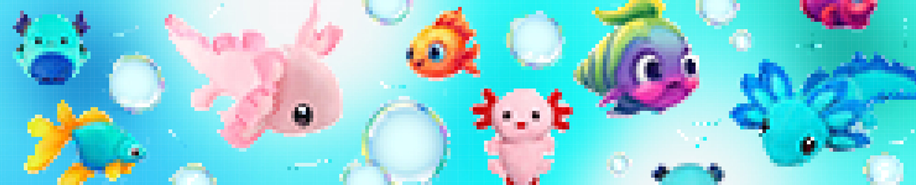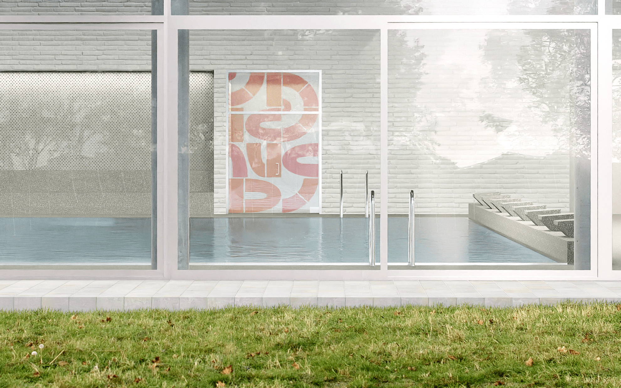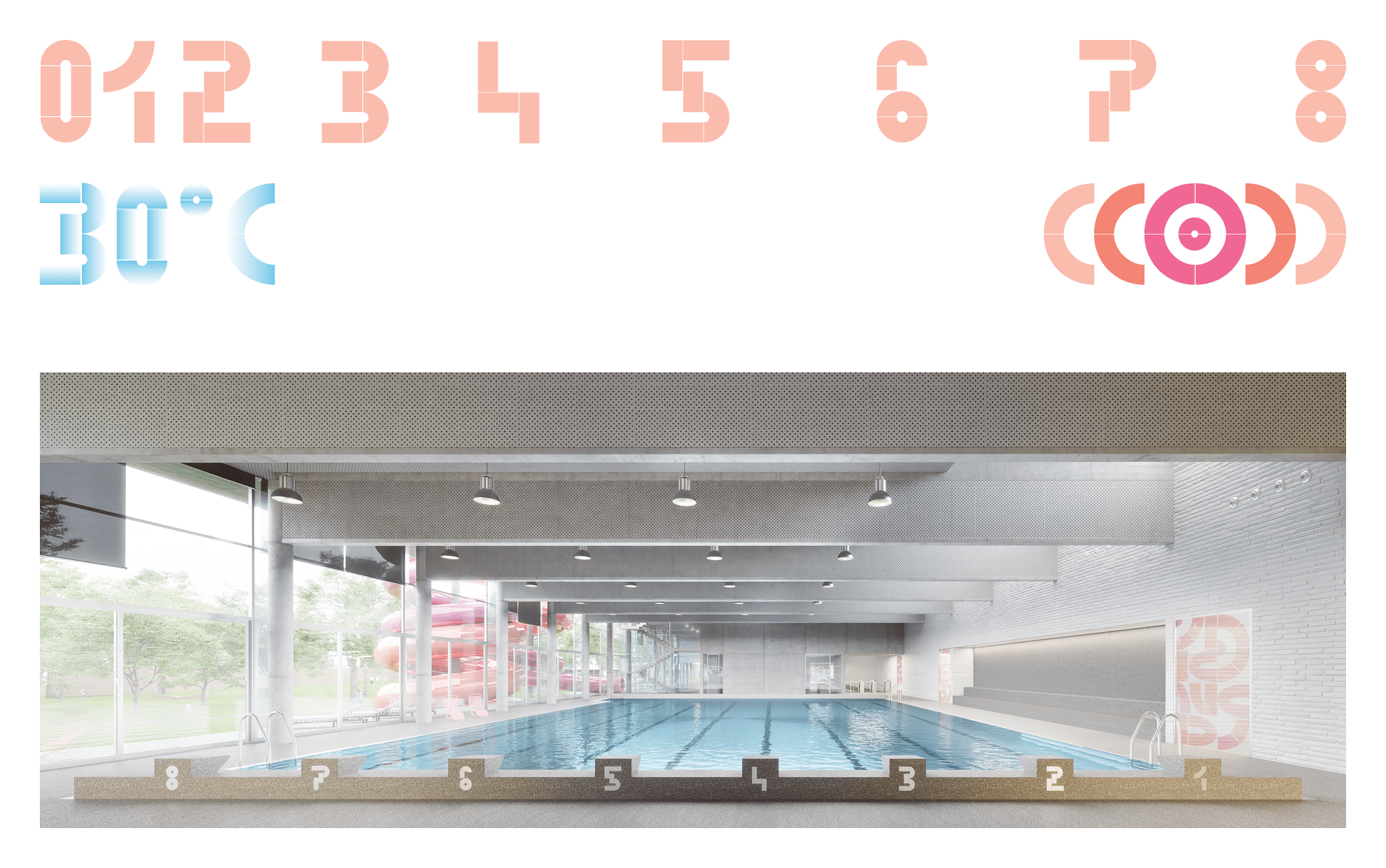 ML (O) K = Městské lázně Krnov (Krnov Municipal Spa — abbreviation of “salamander” in czech). The idea of naming a public bath was actually born right away. The typography is part of the winning architectural design of the competition for the new town spa in Krnov, which was won by the Aoc studio. We are glad that our rosy designs will be part of the new architecture sometime in the future. The plan is to implement a custom font and all accompanying pictograms. The design of the font itself is composed of geometric shapes. The composition of the shapes creates imaginary tiles, which we want to work with as a mosaic, an artistic element in architecture. We chose the specific tones of pink and orange, which are close to the colors of the designed water slide, but also to the pink salamander. The water dragon salamander axolotl is not yellow-black, but pinkish. Rush into the water!