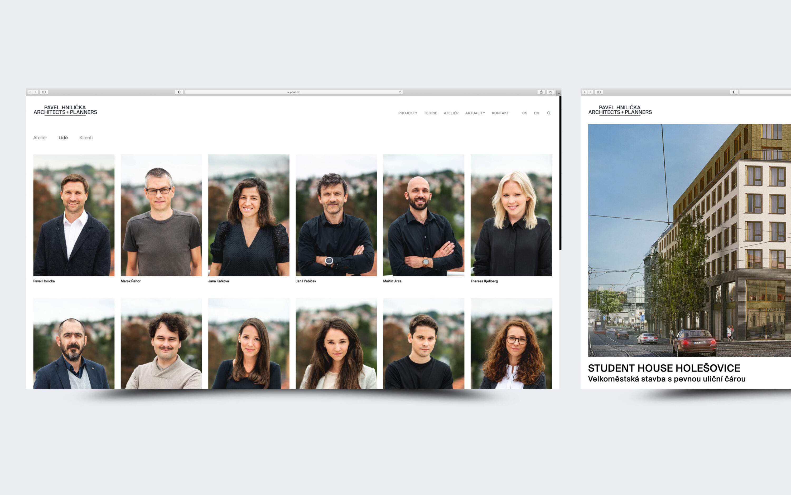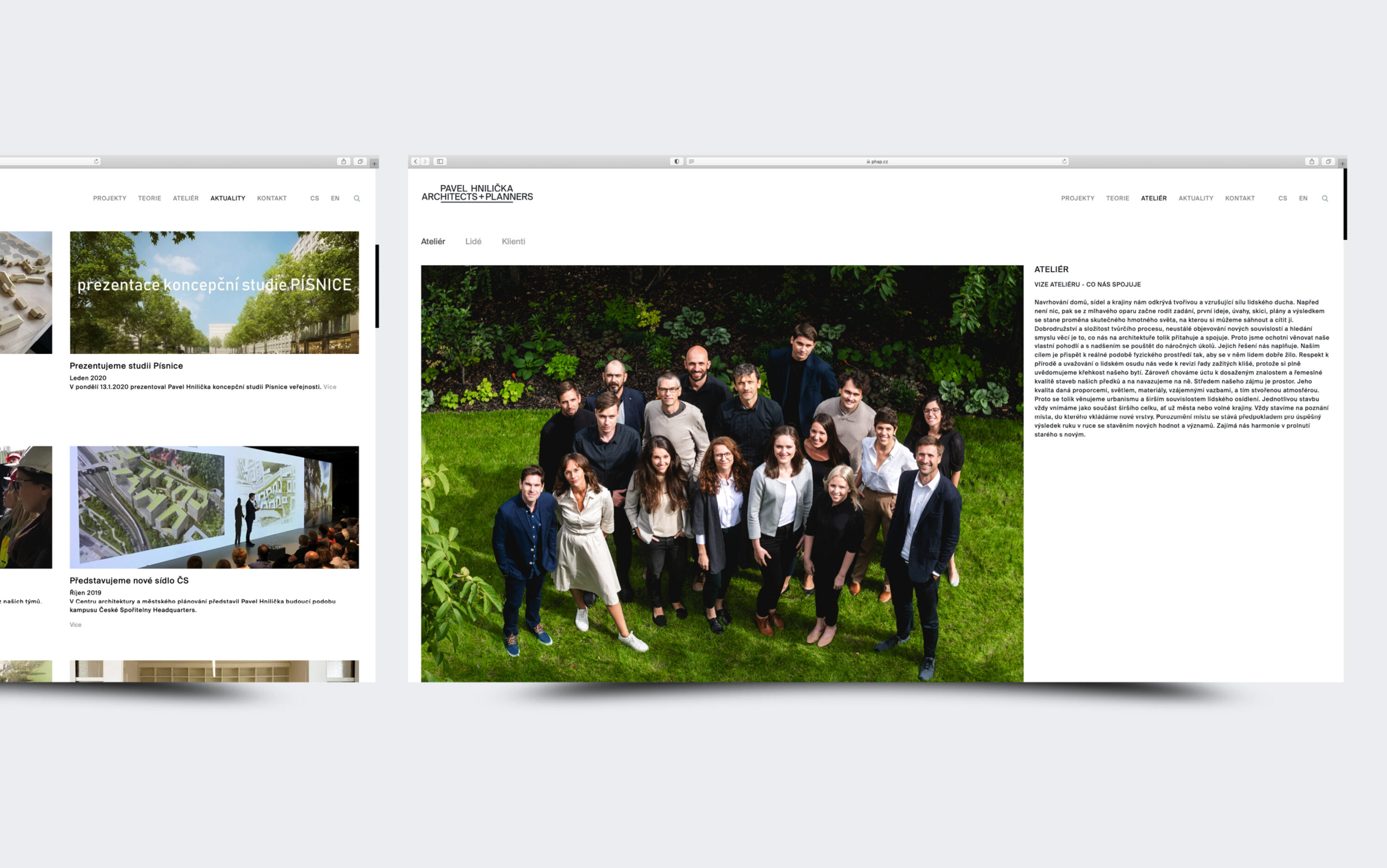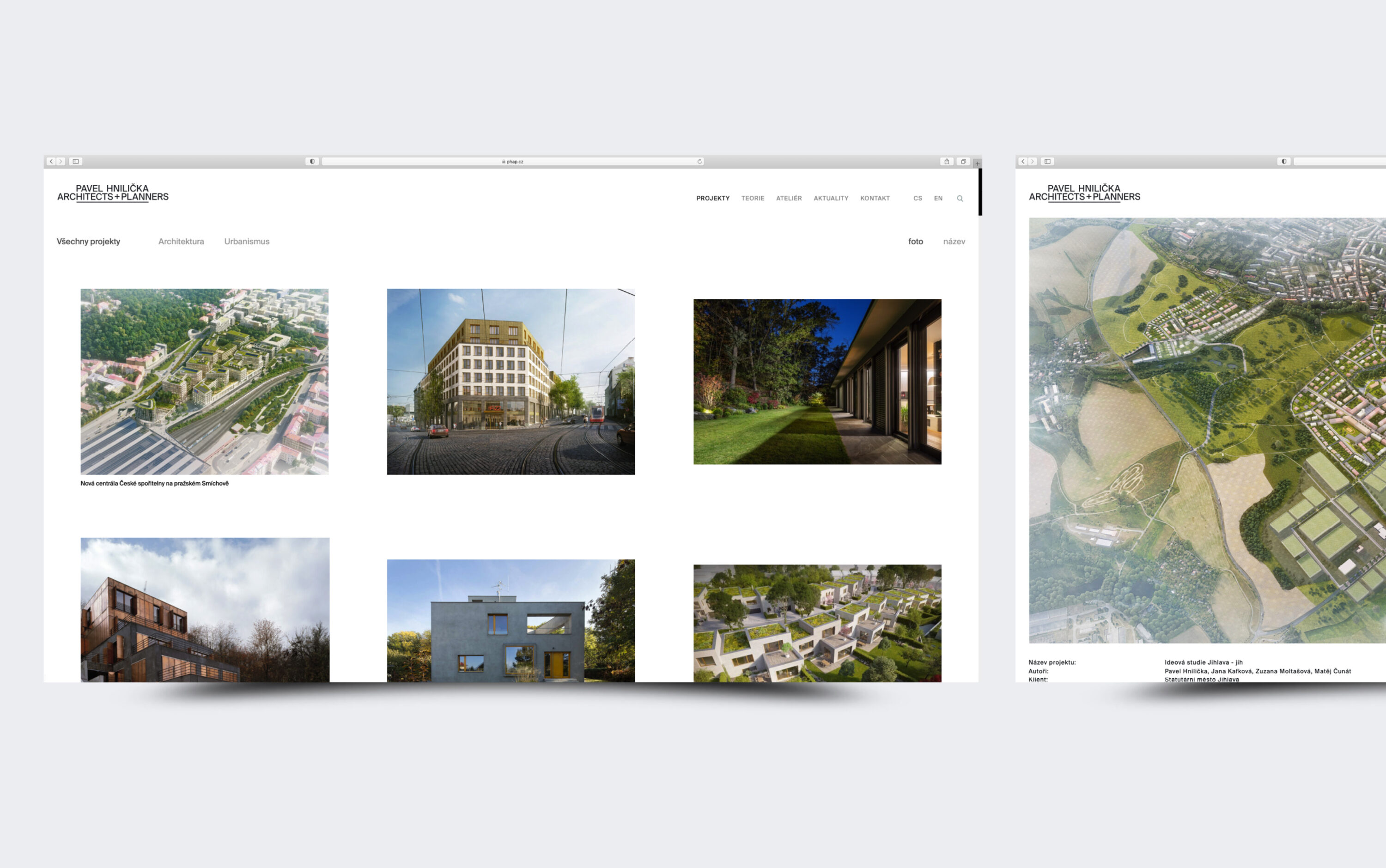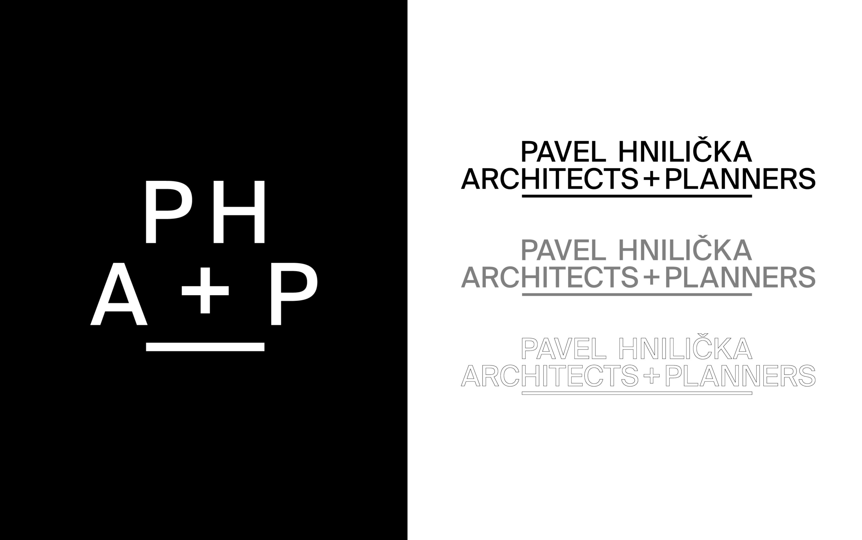 The brand of Pavel Hnilička’s architectural office had a clear development. Behind the new logo was a name change. They wanted it to be more evident that they deal not only with architecture but also with urban planning. The name, therefore, ended as Pavel Hnilička Architects+Planners. We also tried to express their new name by choosing a font. We worked with four fonts which are based on the Helvetica font. Adepts to choose from were New Rail Alphabet, Neue Haas Unica, Favorit Pro, Everett, and Suisse Int’l, which eventually won.