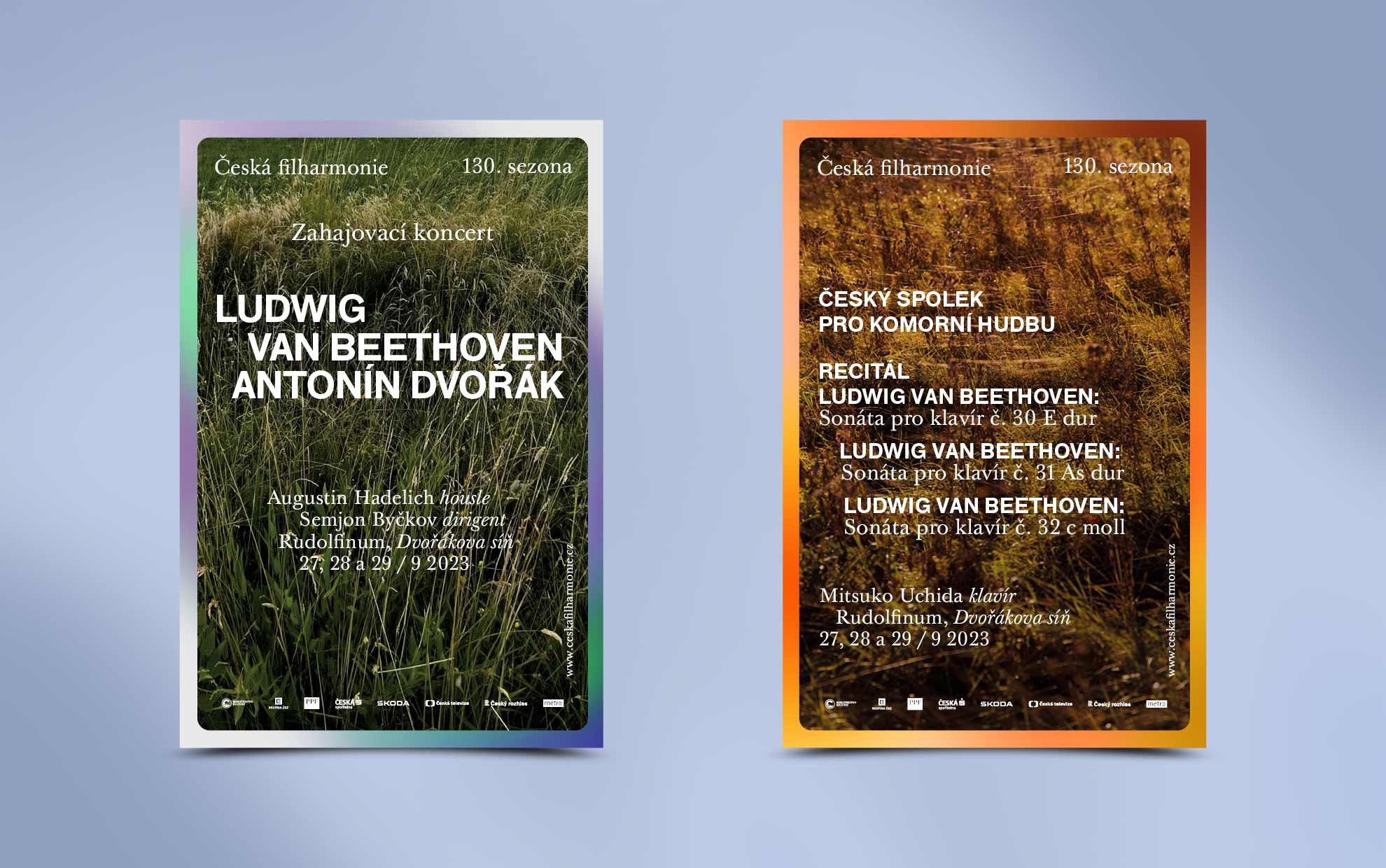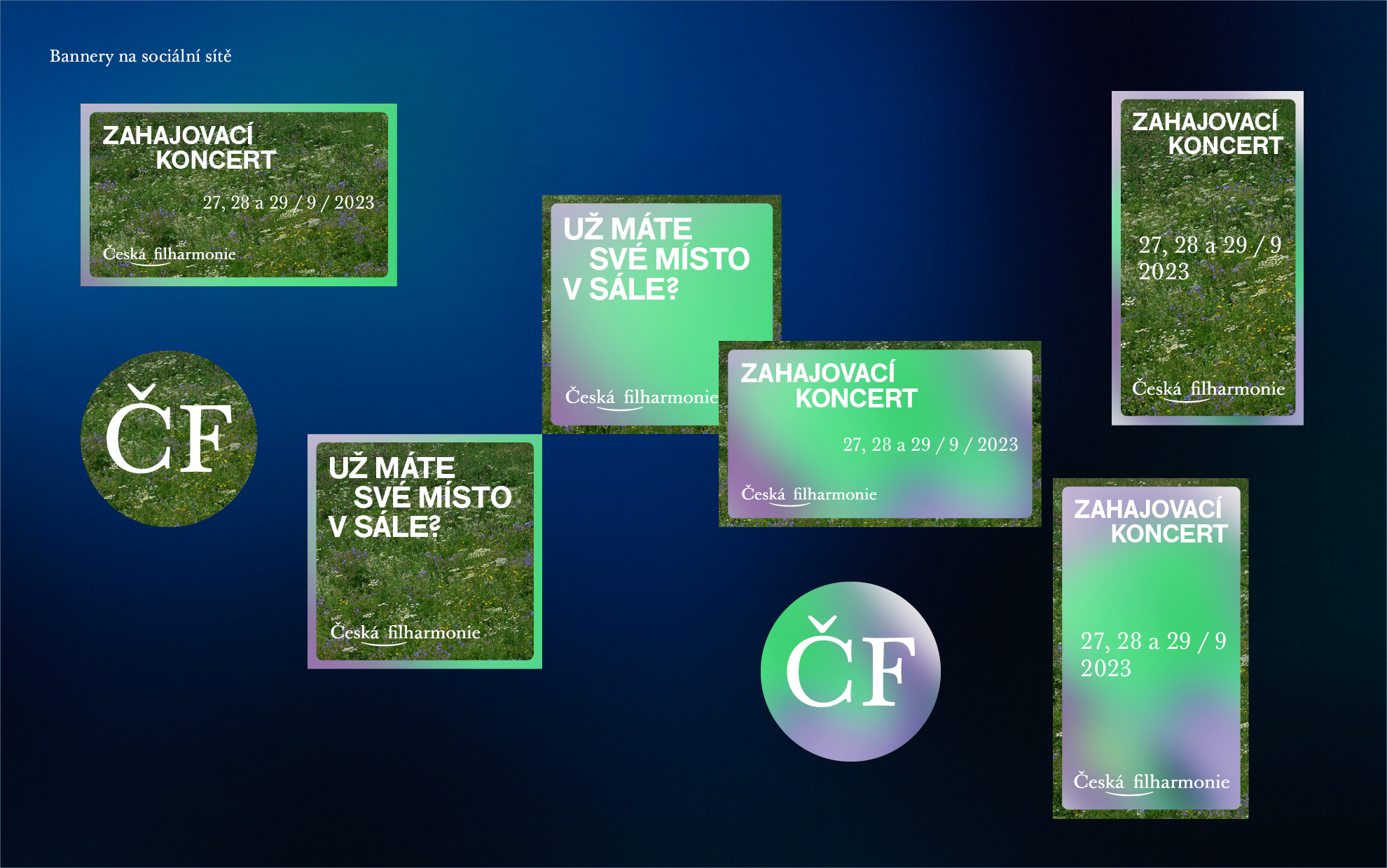 In this way, we particularly address the younger generation, who will seemingly very “ordinary” uncombined shots of nature in the images, such as a meadow, forest, water, or the sky. In a metaphorical sense, conceptually, the image of a beautiful Czech meadow is an eye-appealing concert where many participants play detailed roles in one masterpiece and become a musical ensemble. The same applies to a floating sky or flowing water. In addition, nature provides an endless number of distinctive images, which we show in our concept designs and which we would like to carefully implement using professional photography if we win the competition. Among the photographers we would like to approach for cooperation would be Oskar Helcel, Julie Hrnčířová, or Daniela Dostálková. We are convinced that images of nature in conjunction with the Czech Philharmonic can, for example, arouse positive emotions on social media, specifically because of its civic approach, which seeks to reach the young generation, which is very sensitive to these topics. We recommend that each photo of nature includes not only the name of the photographer, but also the location, for example, bogs at the spring of the Vltava River, Šumava, the South Bohemian Region.
