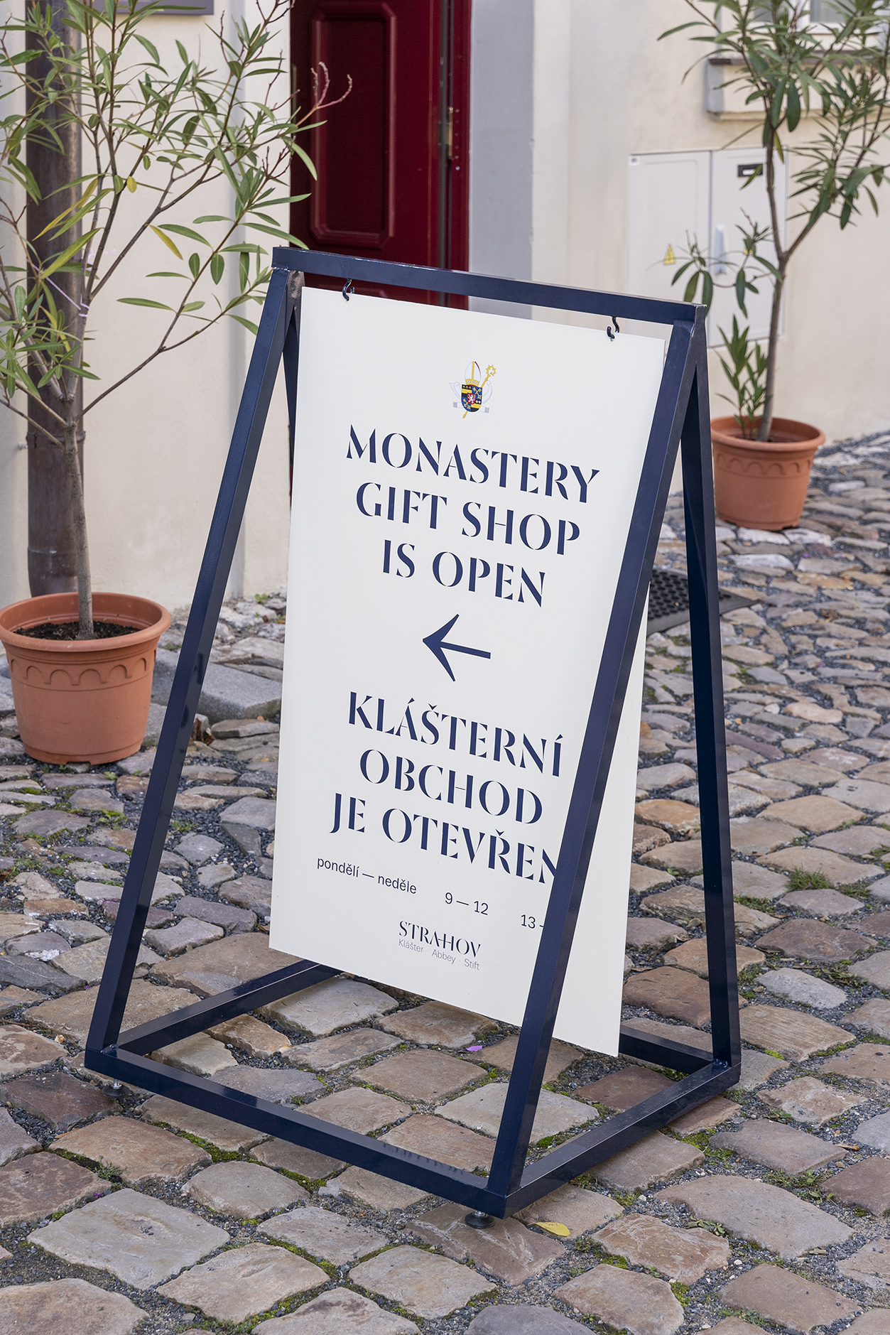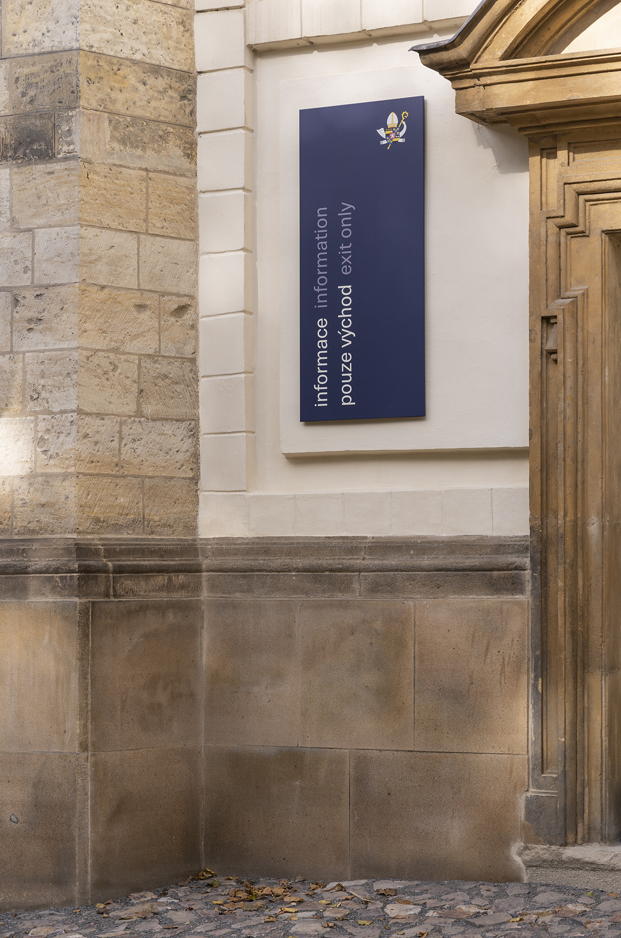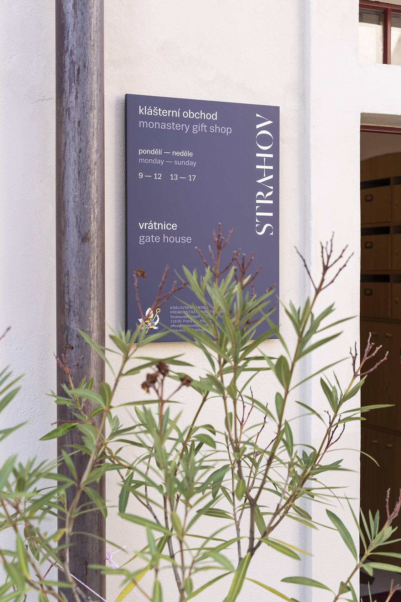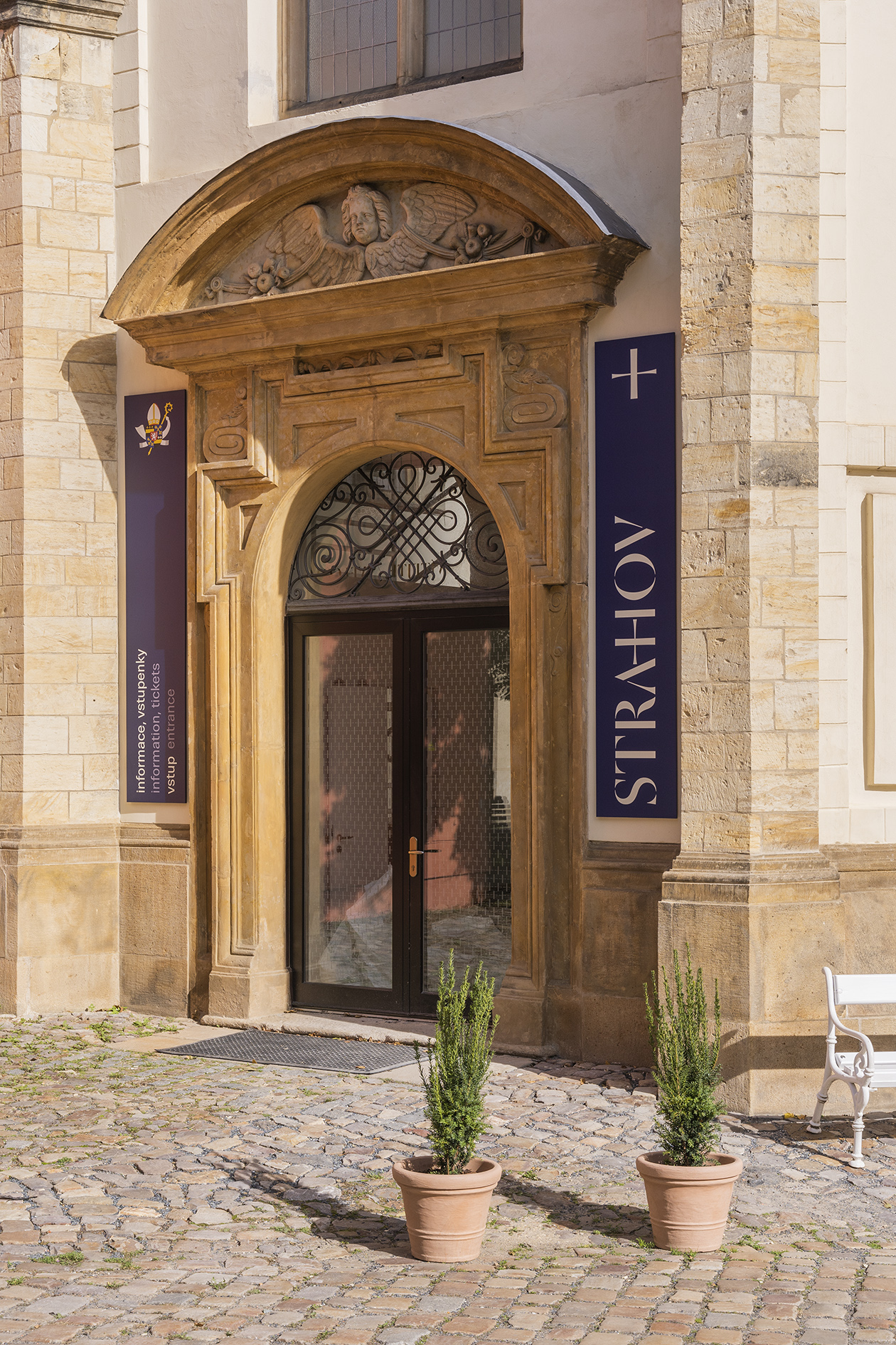 The Strahov Monastery complex is located in the protected conservation area of Prague Castle and is also protected by UNESCO. It is the oldest Premonstratensian monastery in Bohemia. Our aim is to make the work on the monastery’s exterior infosystem rather symbolic, as the essentials are already there. Exterior markings help with easier orientation for the large number of visitors. The work is only at the beginnings. In the future it is expected that the site will have its own orientation system throughout the wide area extending up to the Petřín tower.