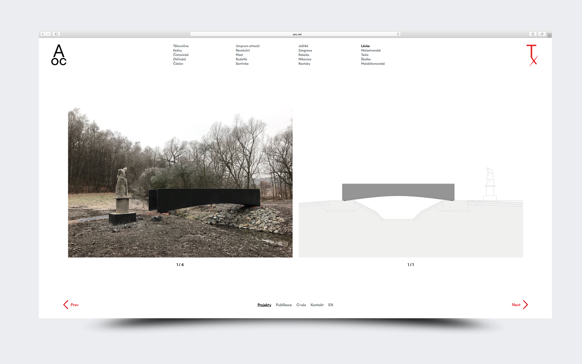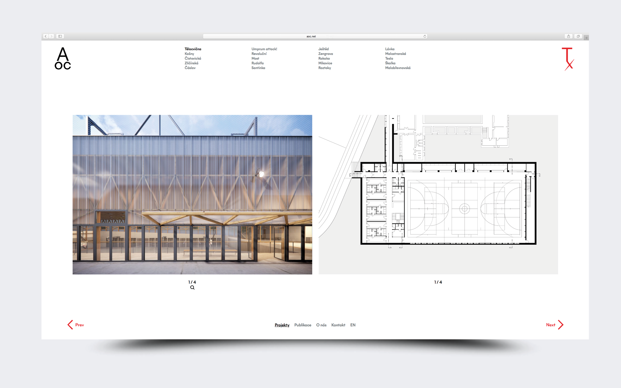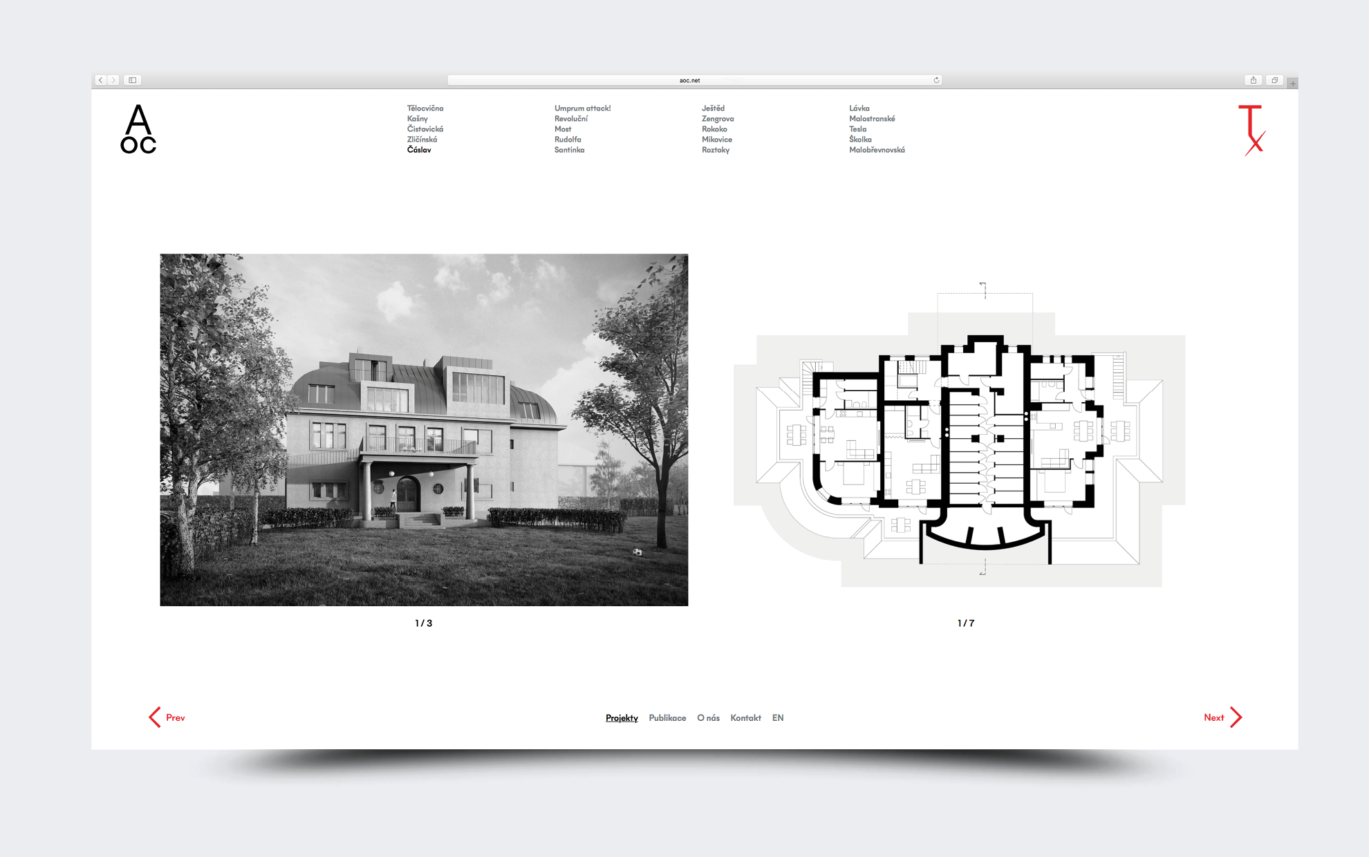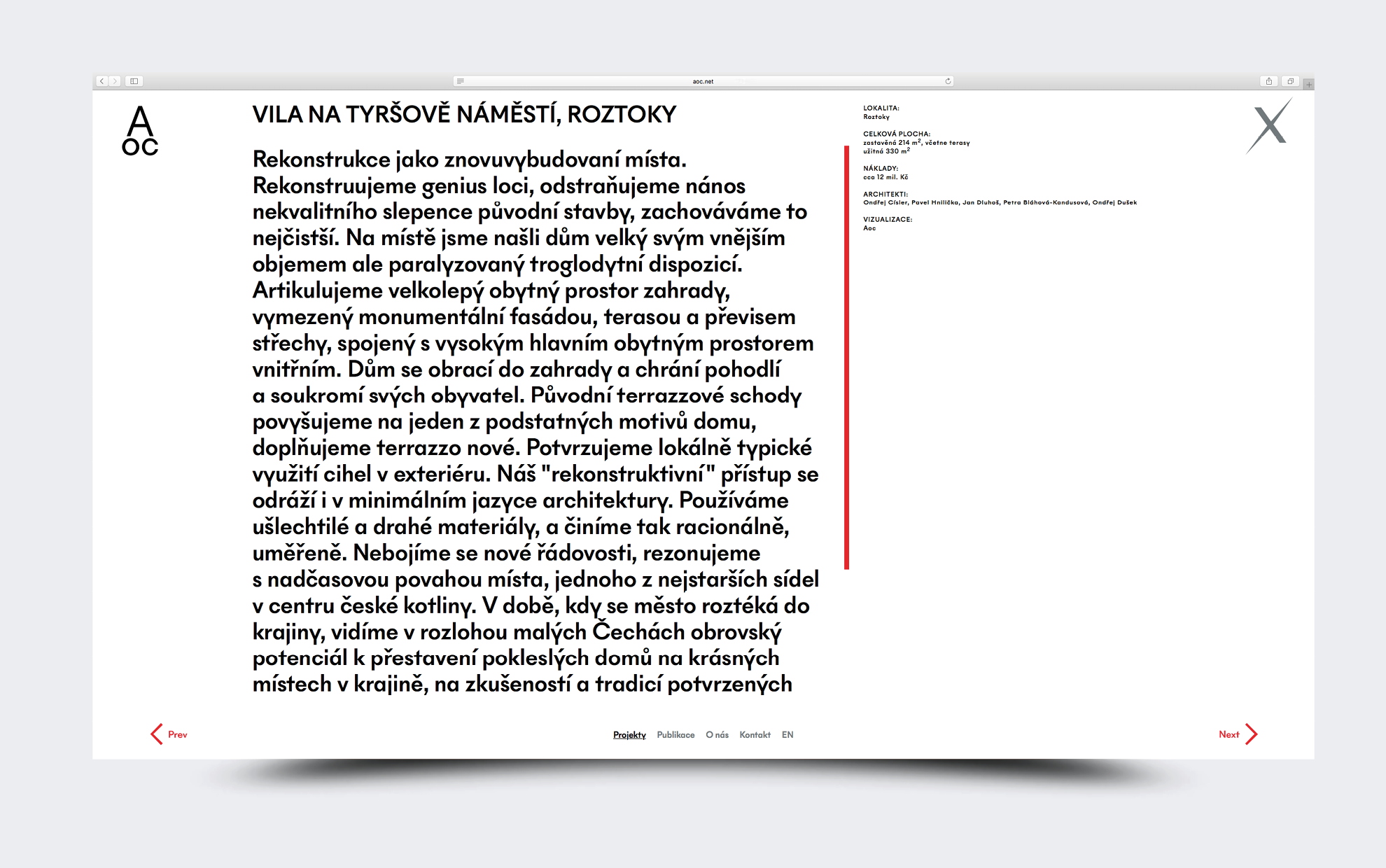 Koncepce webu je postavena na 25 hlavních projektech. Každý projekt má dvě nezávislá preview pole – fotky/rendery a výkresy. Záměrem byla komfortní prezentace, kdy je možné jednotlivé fotky, výkresy a vizualizace projektů vzájemně porovnávat. Text o samotné práci je pak záměrně větší, aby byl v kontrastu s obrazovou částí webu.