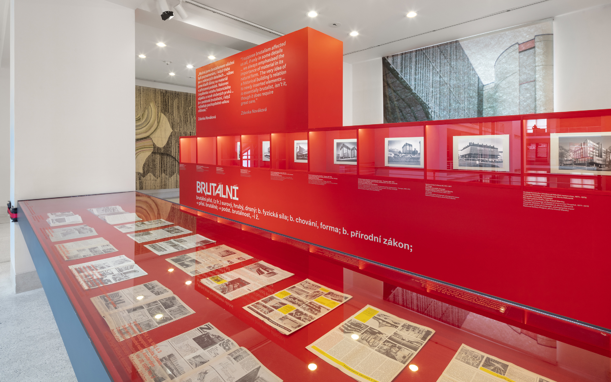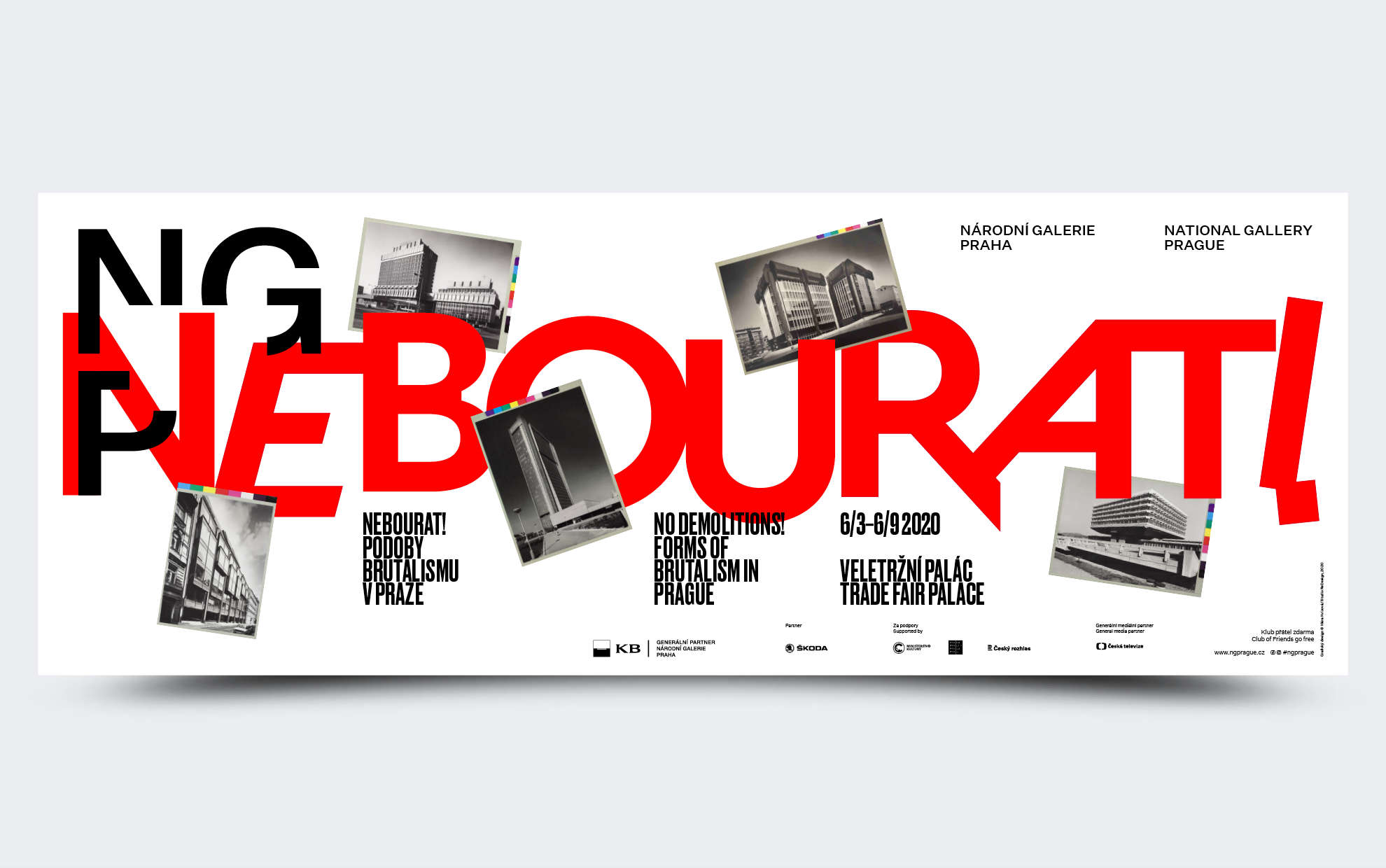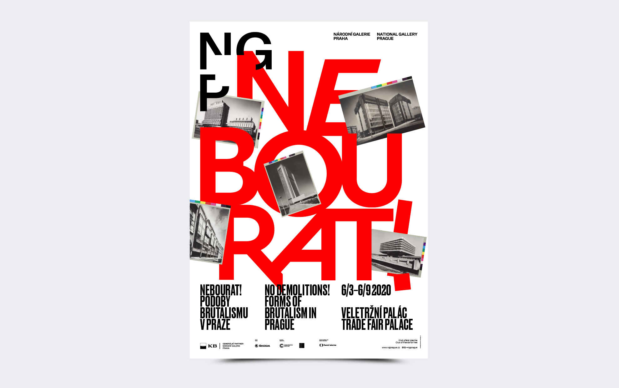 Jako hlavní grafický prvek jsme proto vybrali „osobité“ písmo, které je, stejně jako tehdejší domy, tak odpudivé až je zároveň krásné. Pro účely výstavy byla okna Veletržního paláce v Praze zakrytá speciálním zatemněním, a vzniklo tak místo pro velké plakáty, s citacemi architektonických velikánů jako byl Karel Prager, Alena Šrámková nebo Karel Filsak.