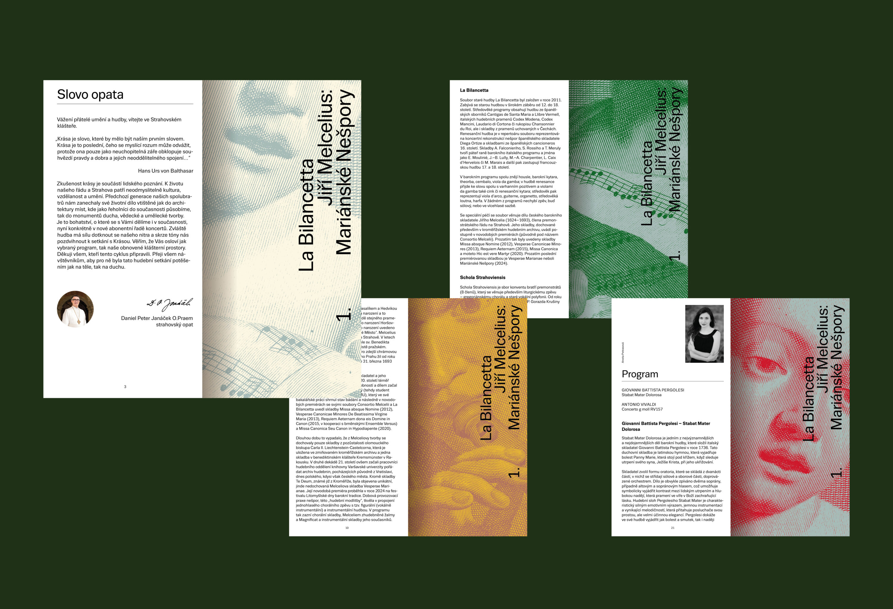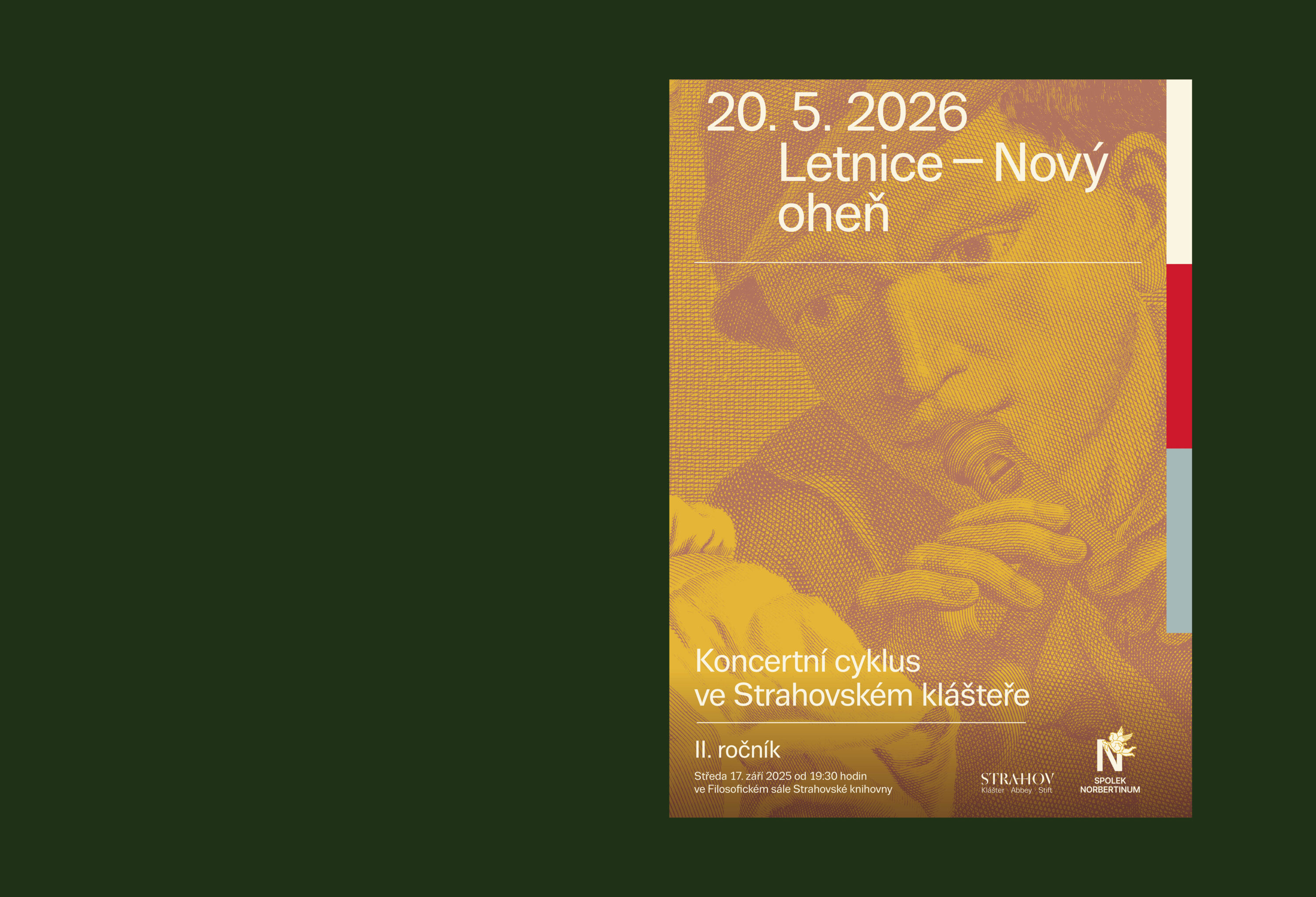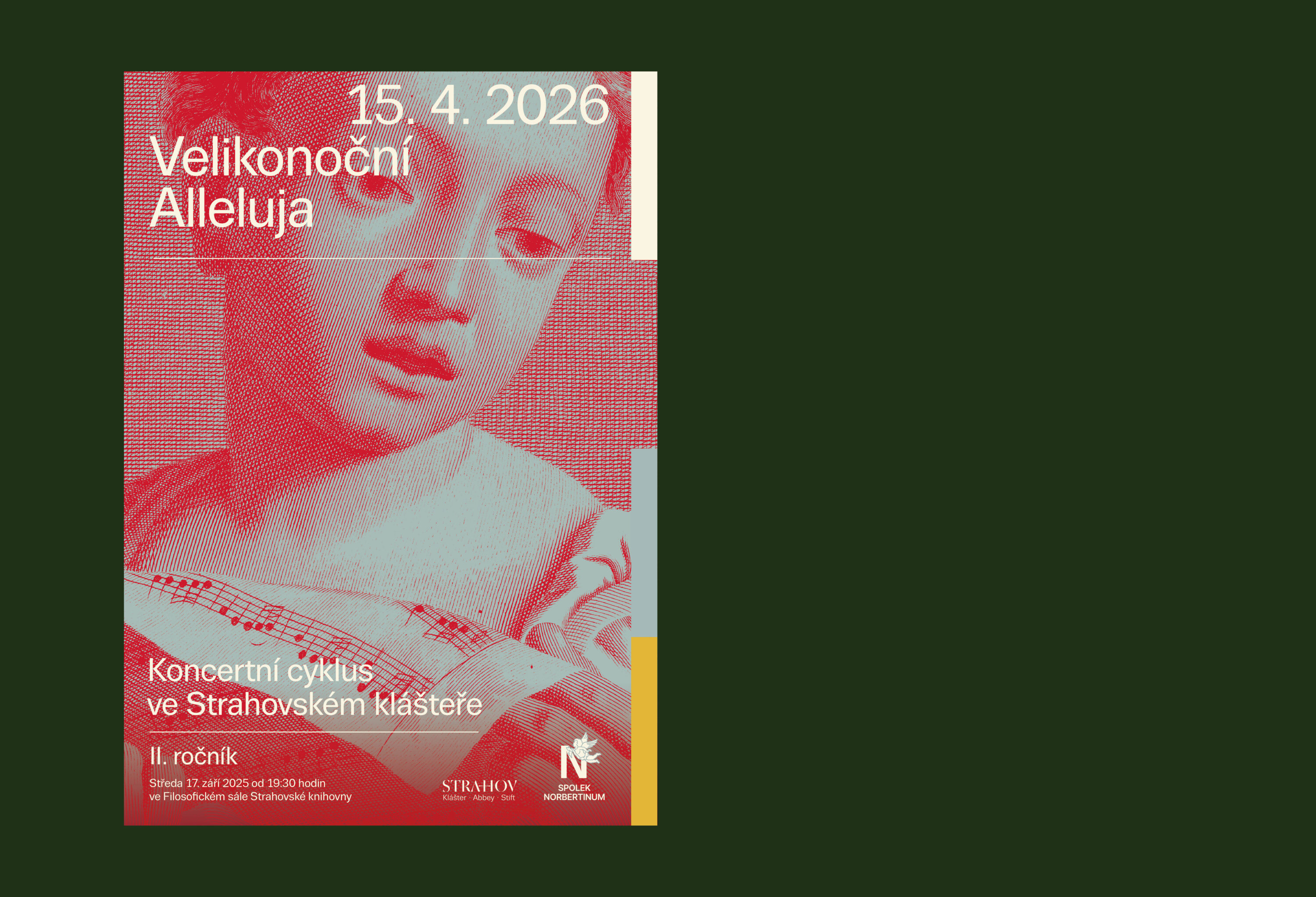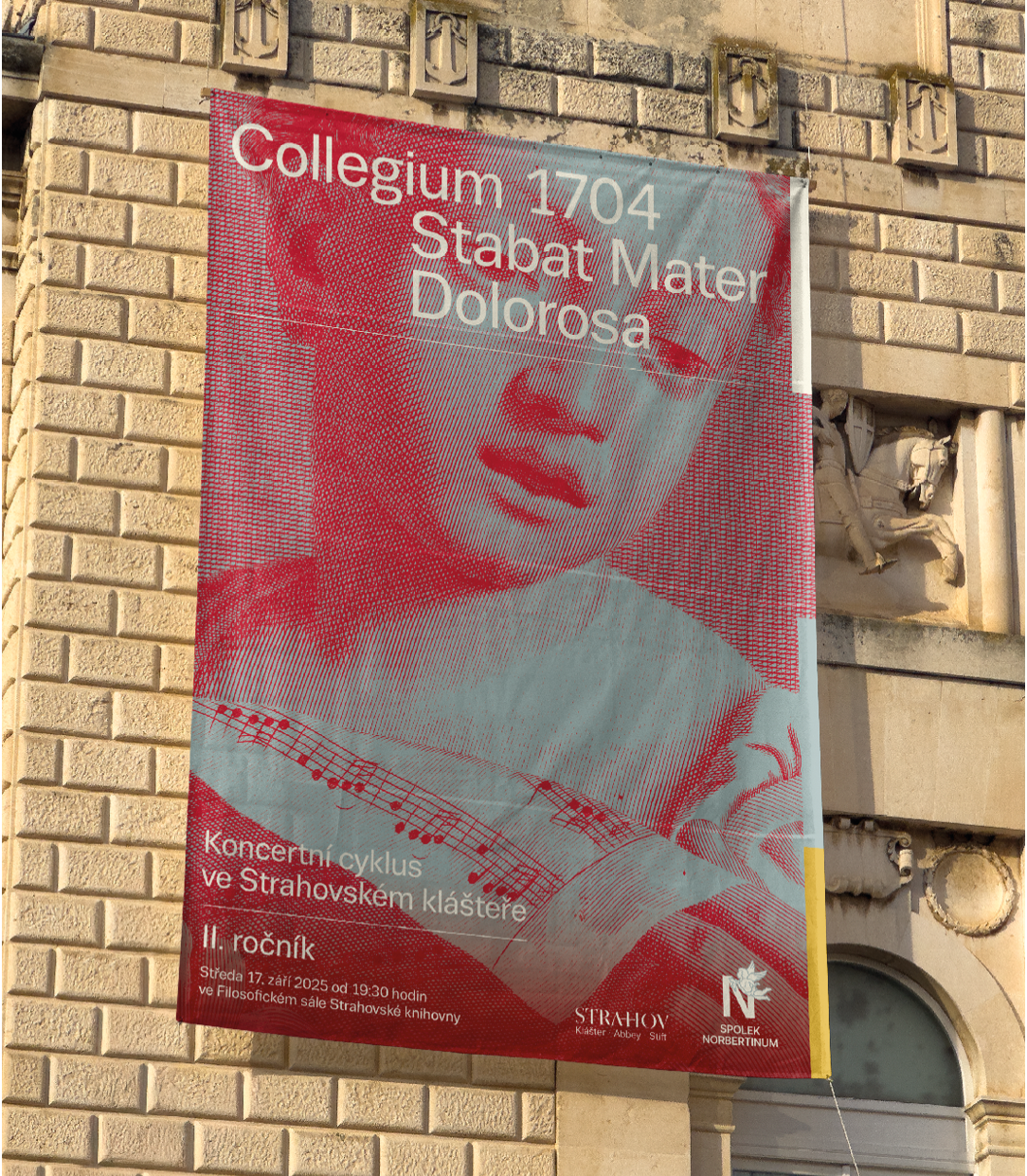 Spolek Norbertinum pokračuje sérií koncertů i v druhé sezóně. Tentokrát se zaměřením co je Strahovu vlastní už po staletí: na rytmu liturgického roku, na dědictví premonstrátské spirituality i na bohatých dějinách hudebního života. Jako inspirativní zdroj jsme použili mědiryt z Benátek, 18. století, od Horatiuse Cavalliho. Pomocí výřezů a barev vytváříme sérii plakátů na celou sezónu.